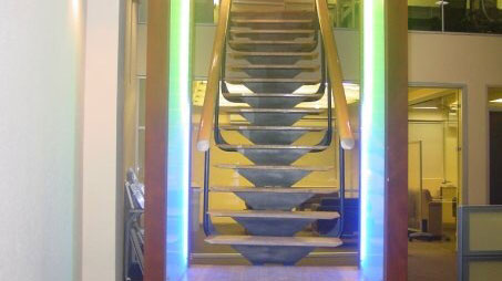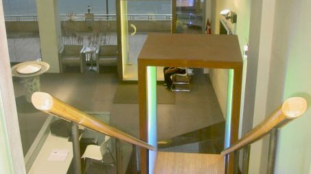 So the design expression of the space exudes a masterly integration of boxes with playful nuances of aesthetics and lighting that enhance the visual from the street, somewhat like a "glam" window view as you might associate more with a retail store. Designed and built under the guidance of the Architect, the process lasted around 6 months to ensure the quality and uniqueness of building works and finishes matched the quality and expression of the Company, and was completed in 2004.